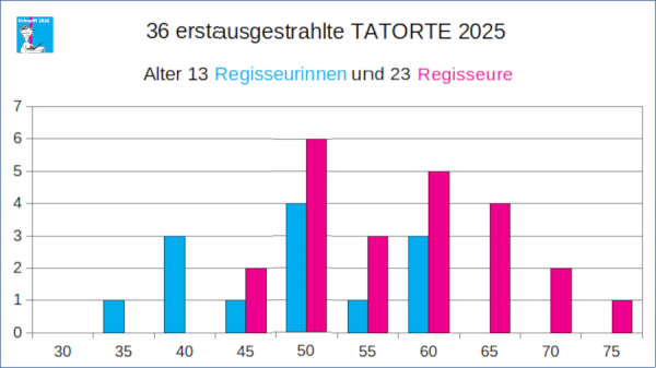 Der älteste Regisseur (74) ist Max Färberböck der auf insgesamt acht TATORTE kommt. Sein erster Fall war AM ENDE DES FLURS (München 2014). Für 2025 inszenierte er den Franken-Fall ICH SEHE DICH (14.9.25).