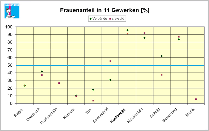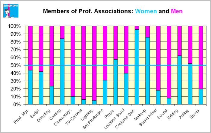 In der deutschen Film- und Fernsehbranche lässst sich eine mehr oder weniger deutliche Unterteilung in Frauen- und Männergewerke feststellen, allerdings gilt sie in dieser Form für verschiedene Filmgruppen nicht in allen Gewerken. Eine gründlichere Untersuchung oder Umfrage beispielsweise durch die Filmverbände könnte Aufschluss über mögliche Gründe geben.
