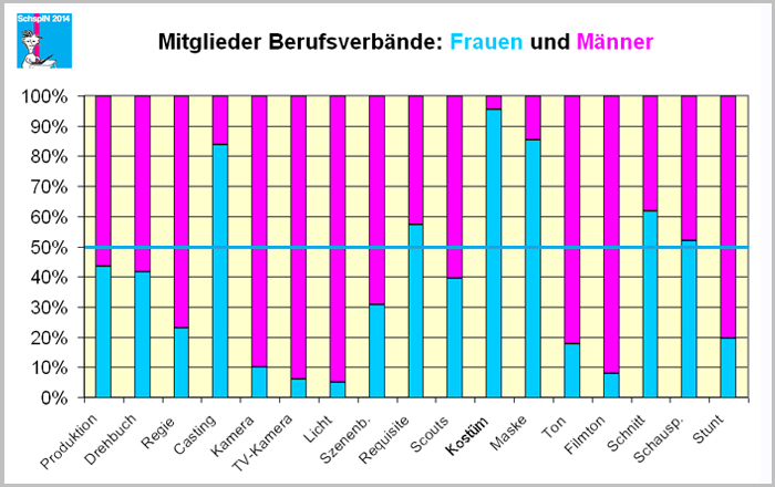 - 17 Verbände. Frauendomänen: Kostüm u Maske. Männerdomänen: Kamera, Fernsehkamera, Licht. Ton, Filmton, Stunt